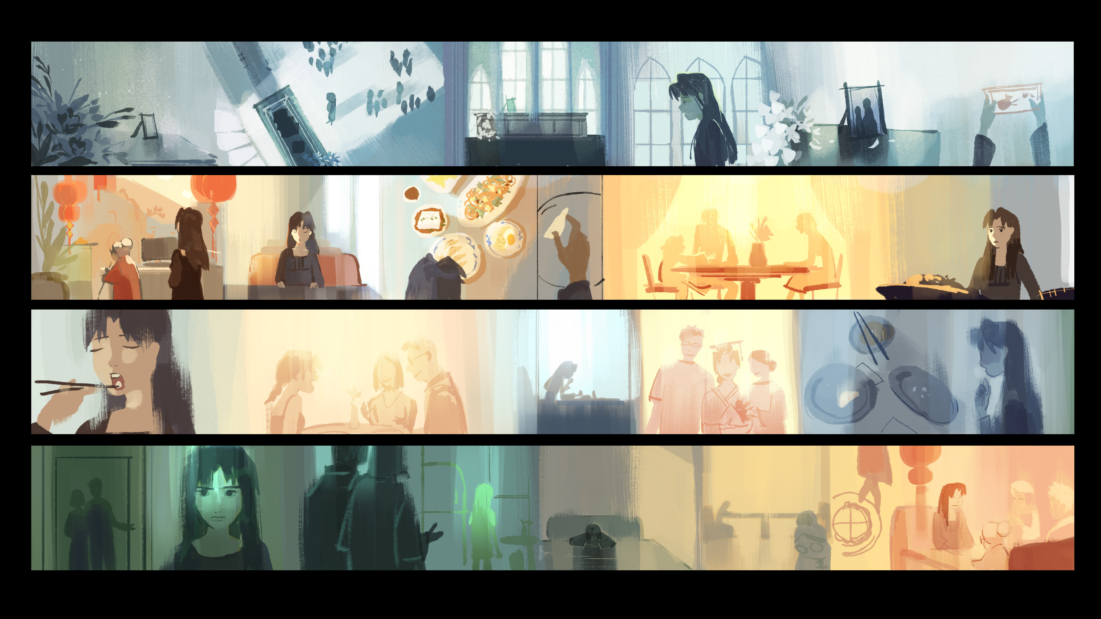 Visual development, backgrounds, and highlighted shots from my student short film, Our Final Fragrant Memory: a story about a young woman who grieves the loss of her parents through food.